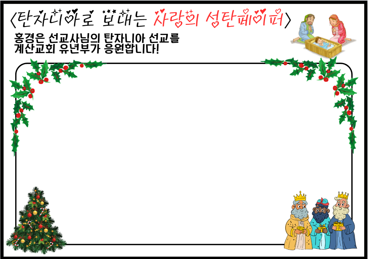 특별히 오늘은 탄자니아 므와비 교회에서 복음을 전하는 홍경은 선교사님을 위해 미리 사랑의 성탄 페이퍼를 작성하는 시간을 가졌어요!