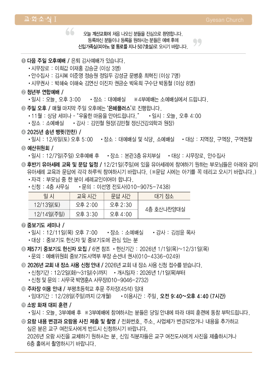 계산교회 / 교회소식 / 주보