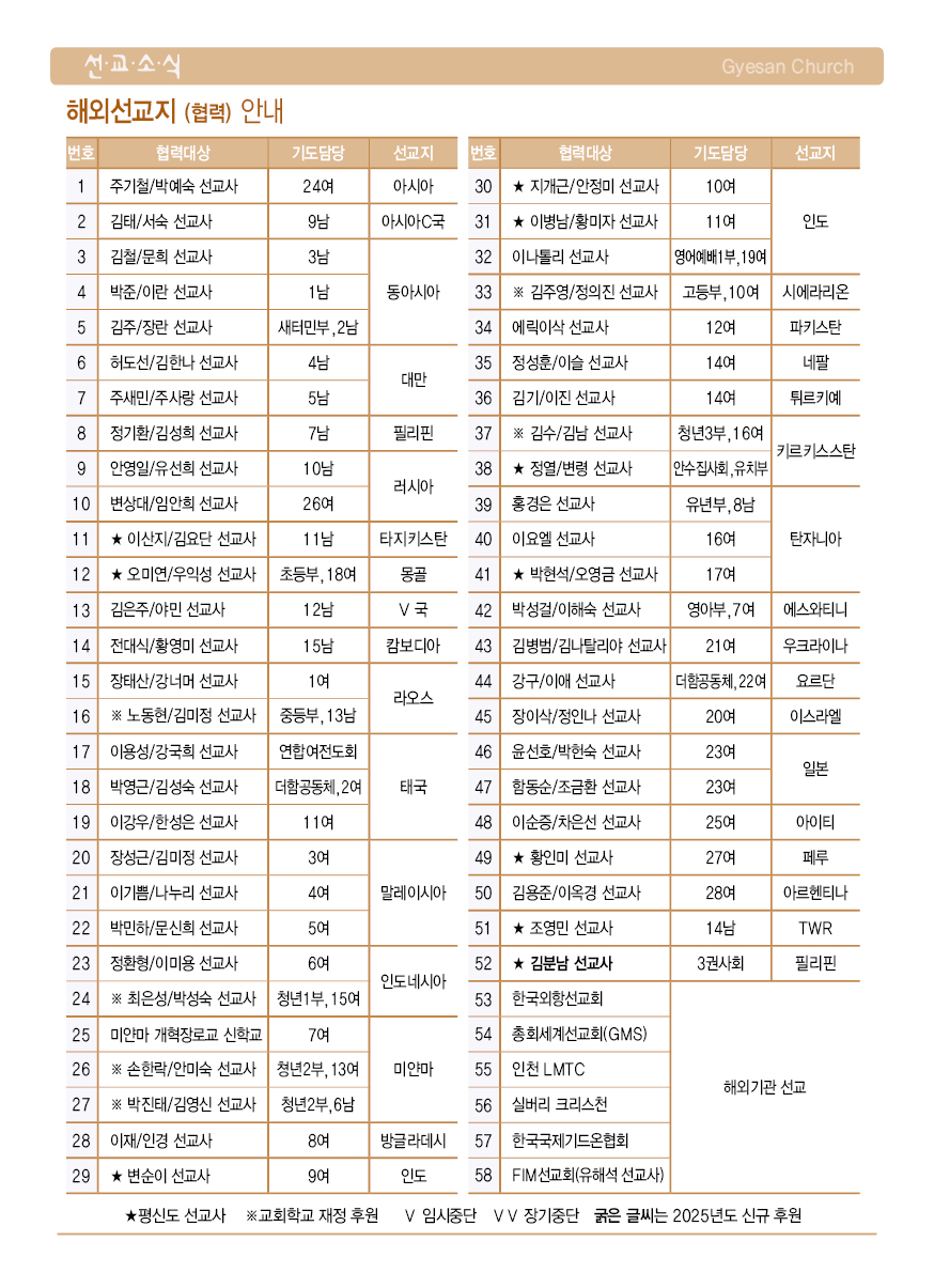 선교사 소식 및 기도제목